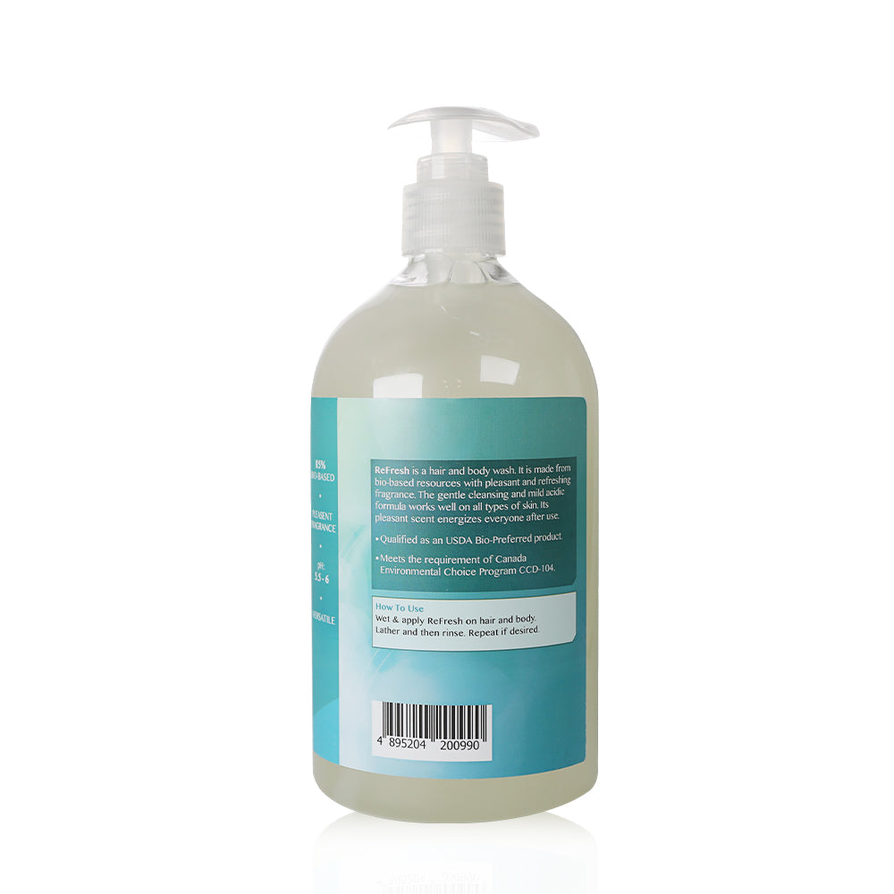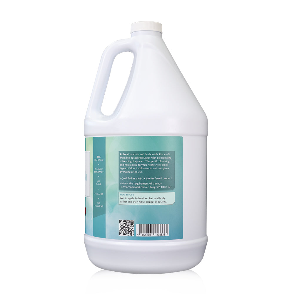 ReFresh is a hair and body wash made from bio-based resources with a pleasant and refreshing fragrance. The gentle cleansing and mild acidic formula work well on all skin types. Its pleasant scent energizes everyone after use. It is qualified as a USDA's BioPreferred® solution, and it meets the requirement of Canada Environmental Choice Program CCD-104.